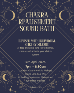 Join us for a deeply restorative Chakra Realignment Sound Bath infused with 1-to-1 Reiki to release emotional blockages, calm your nervous system, and bring your energy back into balance.