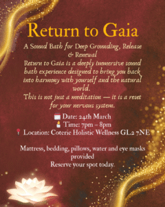 This immersive sound bath is designed to gently guide your nervous system into rest through earth-tuned frequencies, crystal singing bowls, gongs, and guided grounding.